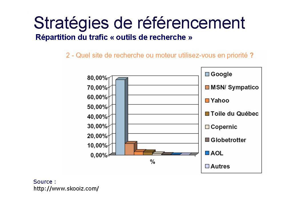 Votre site Web devra se démarquer parmi plus de 24 milliards de pages Web. L'inscription de votre site sur les moteurs de recherche est primordiale. De plus, votre site devra être parmi les premiers de sa catégorie.